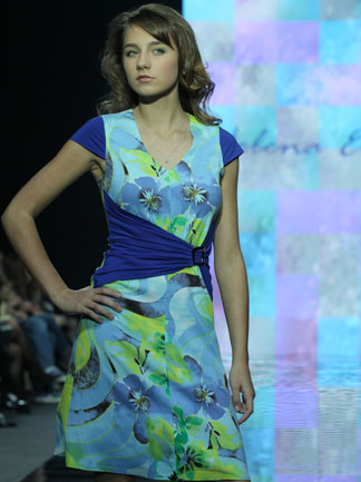 Сочные фрукты и экзотические цветы причудливо переплетаются на ткани. Модель: Дарья Дыбская.